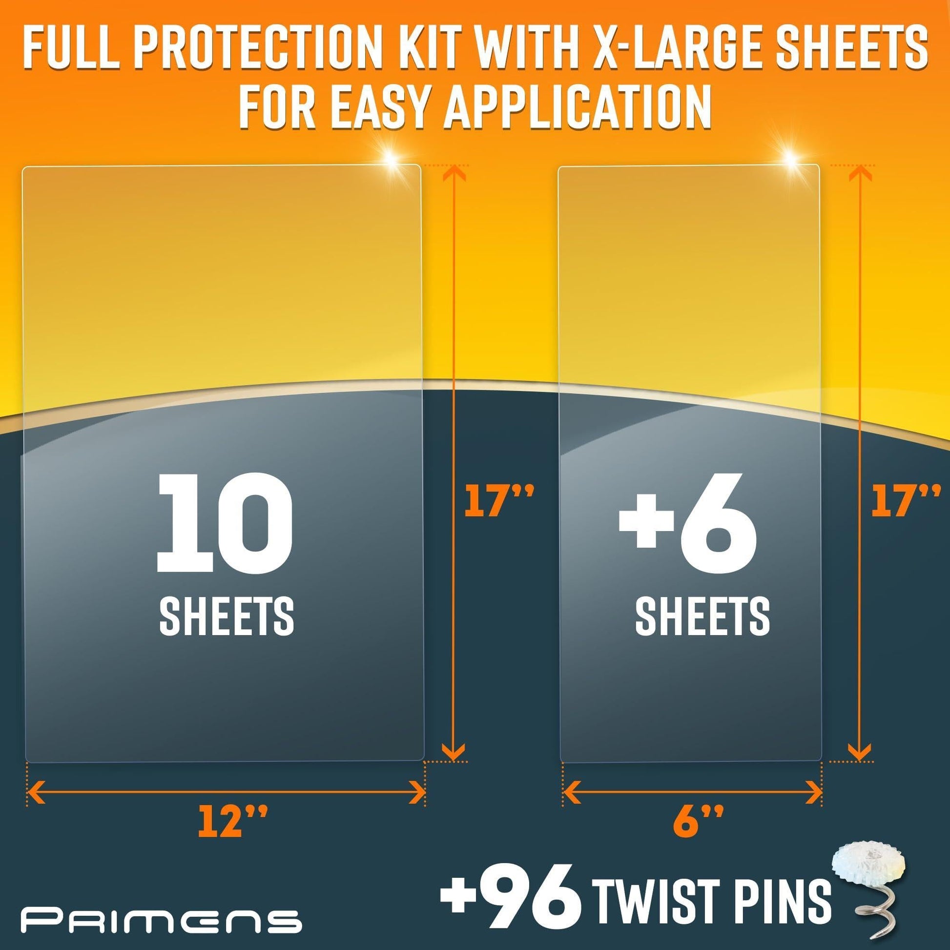 10 X-Large Sheets and 6 Half Sized Sheets in the Pack - You are a busy person and do not have time to do puzzles trying to apply small-sized couch protectors from cats scratching. With Primens X-Large plastic couch sheets that are 17 x 12 inch, youll easily cover half of the armrest with one sheet and add another one if needed. The set comes with 60 pins to reliably secure the protective sheet to the furniture body so that it doesnt fall off.